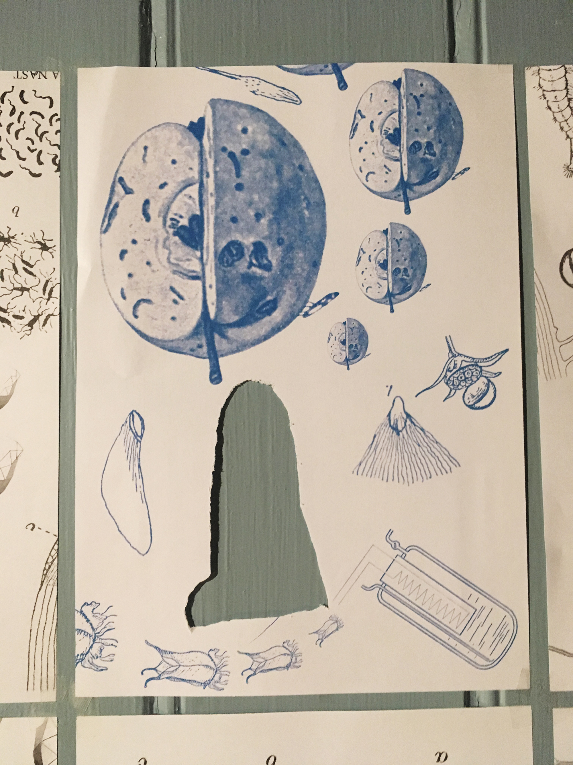 For the template board I extract images of virus and bacteria formations from old schoolbooks that I found there.