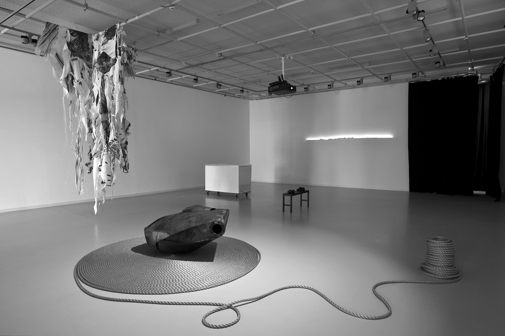 The exhibition presents new works by returning residents of VAA Nida Art Colony. In June and July 2016, the artists were living and working here, developing ideas they had explored in their earlier residency periods or proposed specifically for this show. The hybrid space of the exhibition cancels the seasonal nature of Nida (summer mixes with winter), stretches time (something started three or five years ago becomes a material body now), and blurs the distinction between a concrete site – Nida – and the global world (works produced from locally sourced material or issues have relevance across the globe). The artists erase the borders between the inside and the outside, as well as between the white and the black cube (or exhibition and concert space), and play with the metaphor of the Curonian Spit as a green cube (the National Park is also a museum of the interaction of nature, culture and technology here). Hybrid spaces and landscapes open up a multifaceted perspective of the networked Neringa, Spit and Nida.