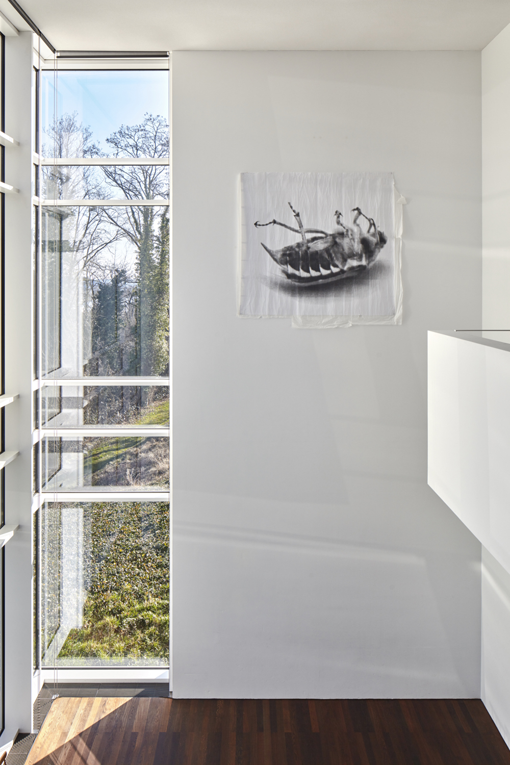 Das Thema der Transformation steht im Mittelpunkt ihrer ersten großen Museumsausstellung. Mit einer Skulptur am Rhein und einer Hochdruckreinigerzeichnung vor dem Eingang werden die Besucher*innen empfangen und in den Neubau von Richard Meier geleitet. Dort begegnen sie den beiden bereits 2012 von Franziska Nast gestalteten hohen Säulen, die sie mit symbolhaften Zeichnungen und Verweisen tätowierte.